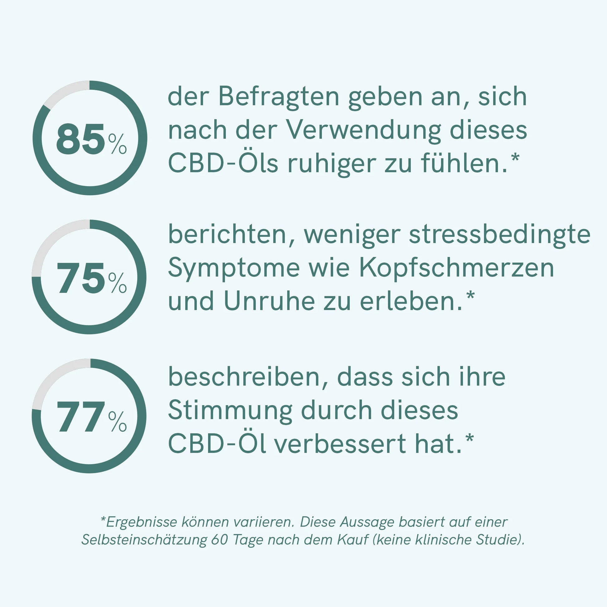 Ein 15 % CBD Öl enthält 1500 mg CBD pro 10 ml Flasche. Die Prozentangabe spiegelt also die Konzentration von Cannabidiol im Produkt wider. Je höher die Zahl, desto mehr CBD ist pro Tropfen enthalten. Ein 15 % Öl richtet sich an Anwenderinnen und Anwender, die sich eine stärkere Wirkung wünschen und bereits Erfahrung mit CBD Produkten haben.
