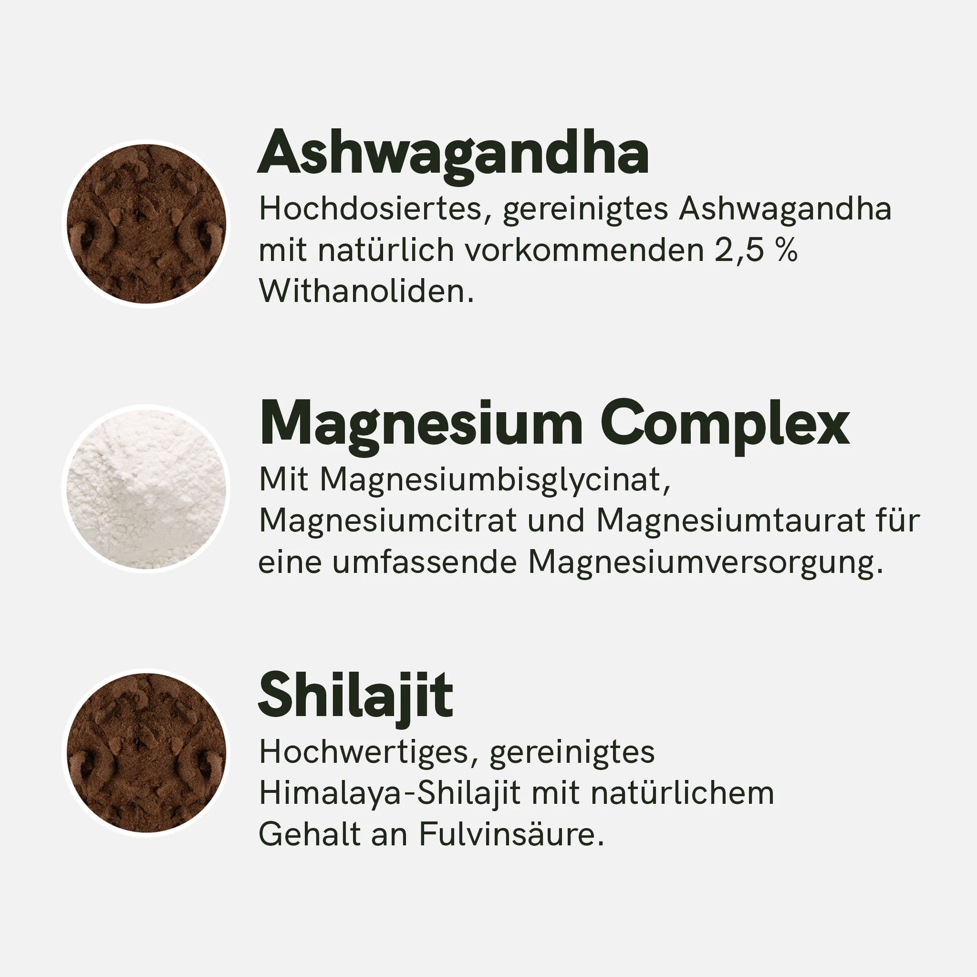 - Shilajit, reich an Fulvinsäure und Spurenelementen, wird traditionell zur Unterstützung von Ausdauer, Vitalität und männlichem Wohlbefinden geschätzt.*
