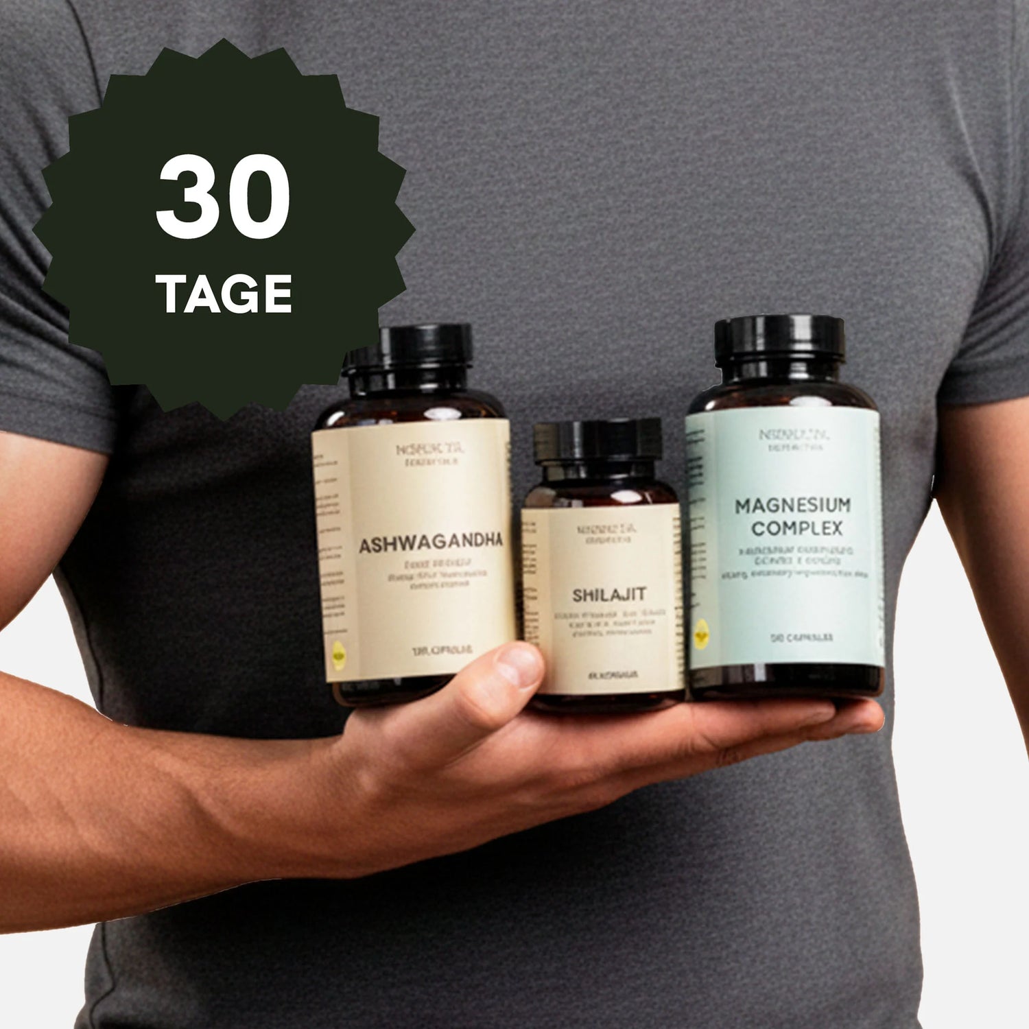 Dieses Ausdauer-Support Set kombiniert drei sich ergänzende Komponenten, die traditionell für die Unterstützung der männlichen Balance und Vitalität geschätzt werden: