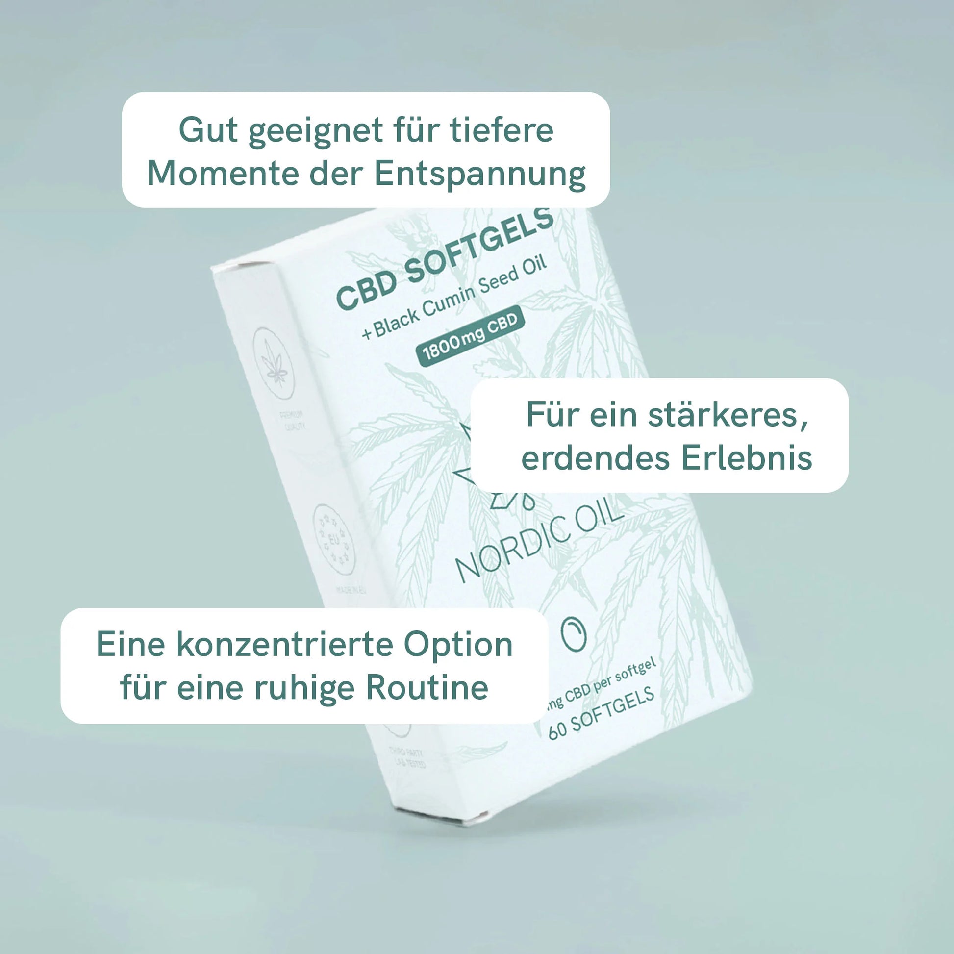 Diese Vollspektrum 1800mg CBD Softgels sind unser stärkstes geschmacksneutrales Produkt. Entwickelt, um Sie an besonders stressigen Tagen zu unterstützen, enthalten diese Kapseln hochwertiges Schwarzkümmelöl sowie pro Packung jeweils 72mg CBDa, 72mg CBG und 72mg CBN – zur Ergänzung der hohen CBD-Konzentration. Die CBD-Kapseln sind sojafrei und werden in der EU hergestellt. Sie sind nicht vegan.