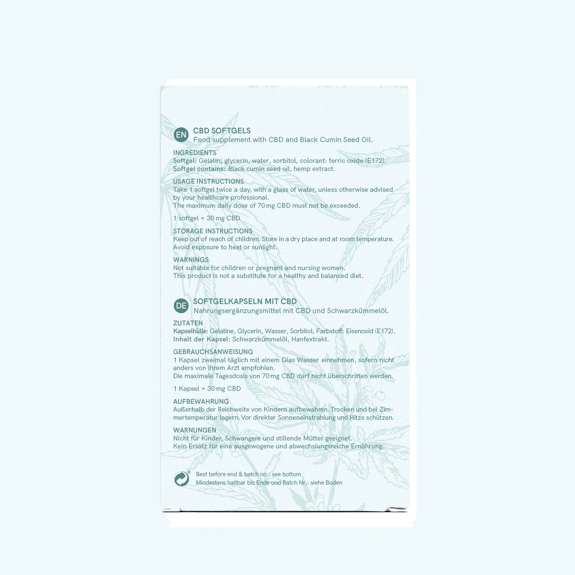 - 3 Blister mit insgesamt 60 Kapseln (1800mg CBD insgesamt)