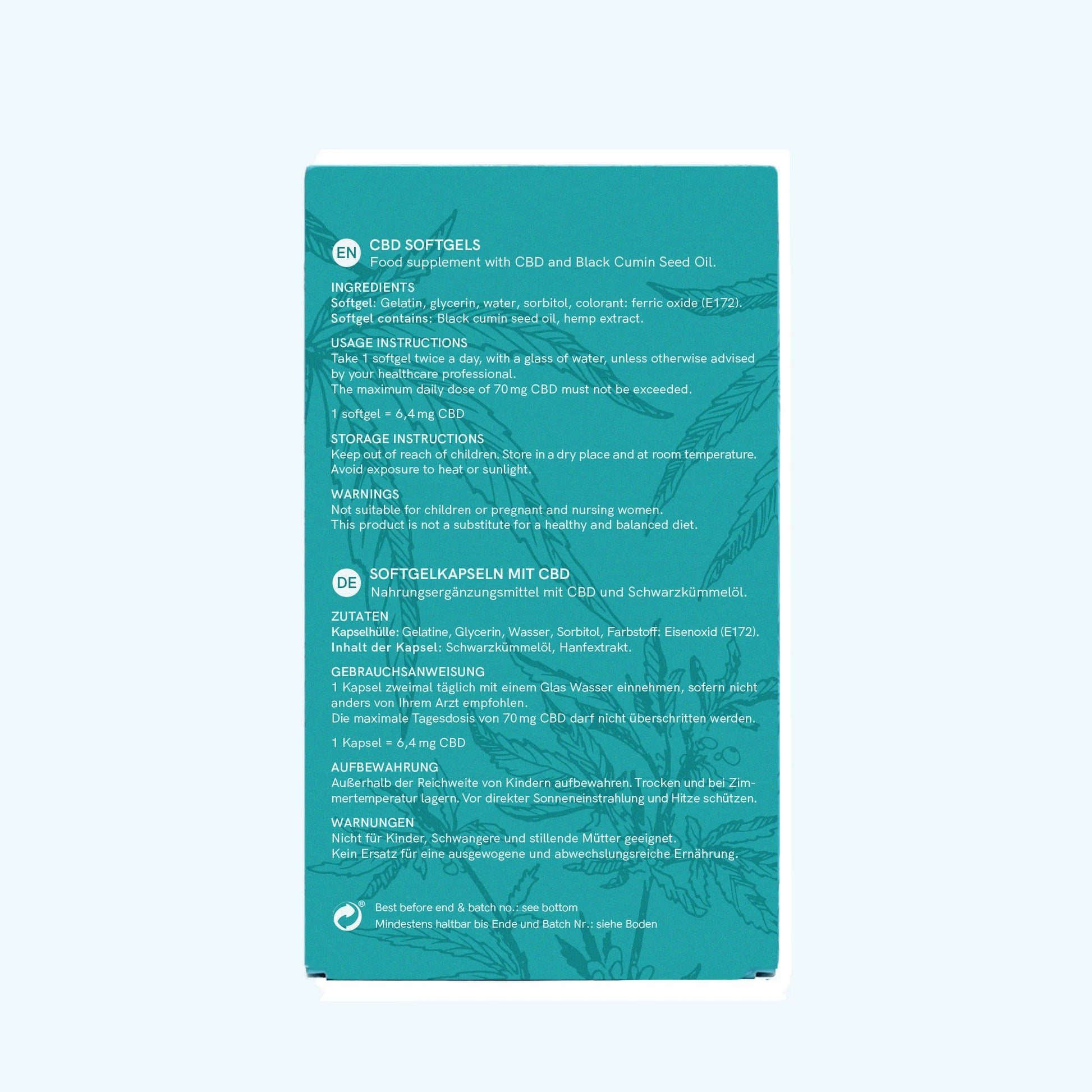 Inhalt der Kapsel: Schwarzkümmelöl, Hanfextrakt.