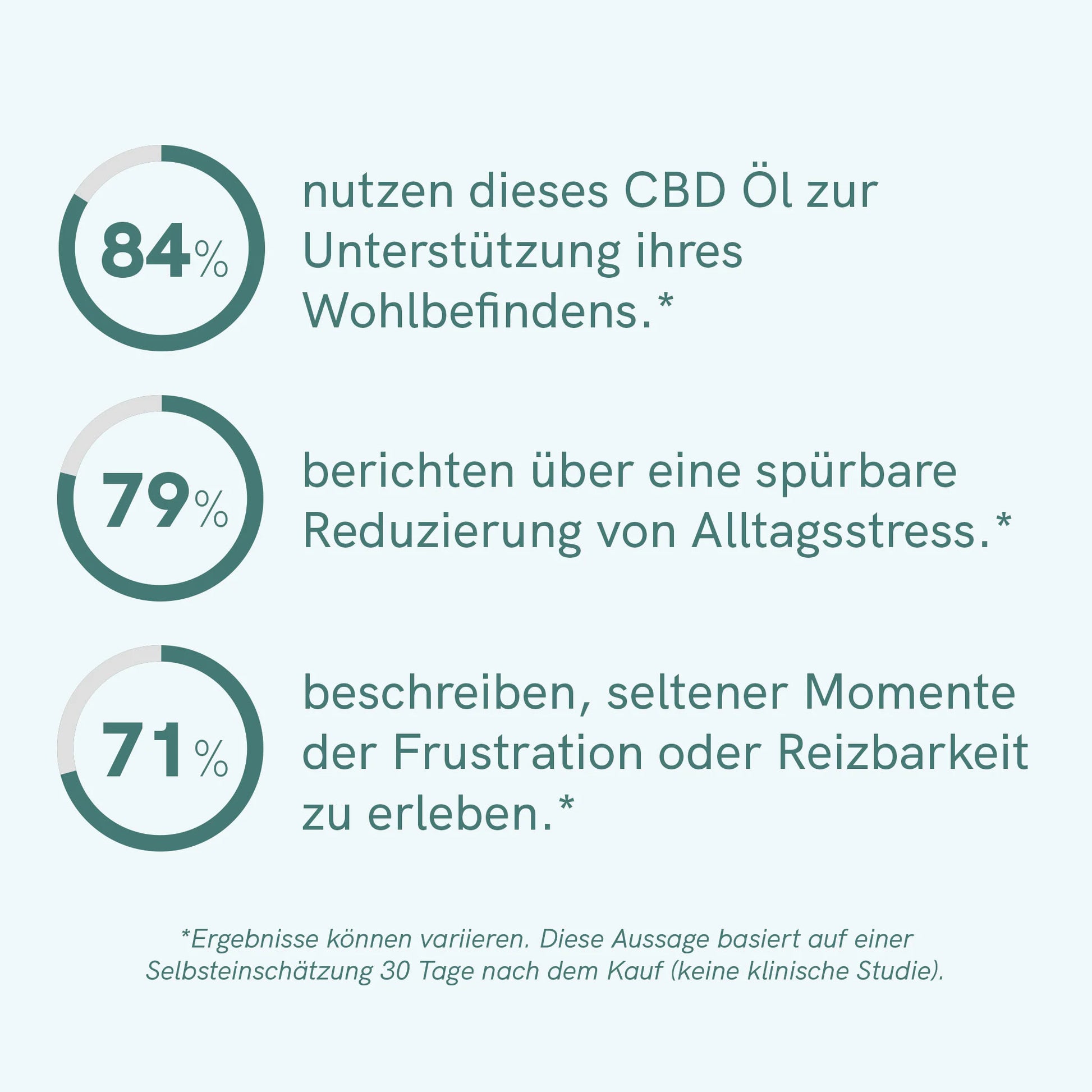 Die Prozentangabe bei CBD Öl, wie zum Beispiel 5 %, beschreibt den Anteil von Cannabidiol (CBD) im Gesamtprodukt. Ein 5 % CBD Öl enthält also 500 mg CBD pro 10 ml Flasche. Diese Konzentration eignet sich besonders für Einsteigerinnen und Einsteiger oder für Personen, die eine niedrige Dosierung bevorzugen. Je höher die Prozentzahl, desto mehr CBD ist im Öl enthalten.