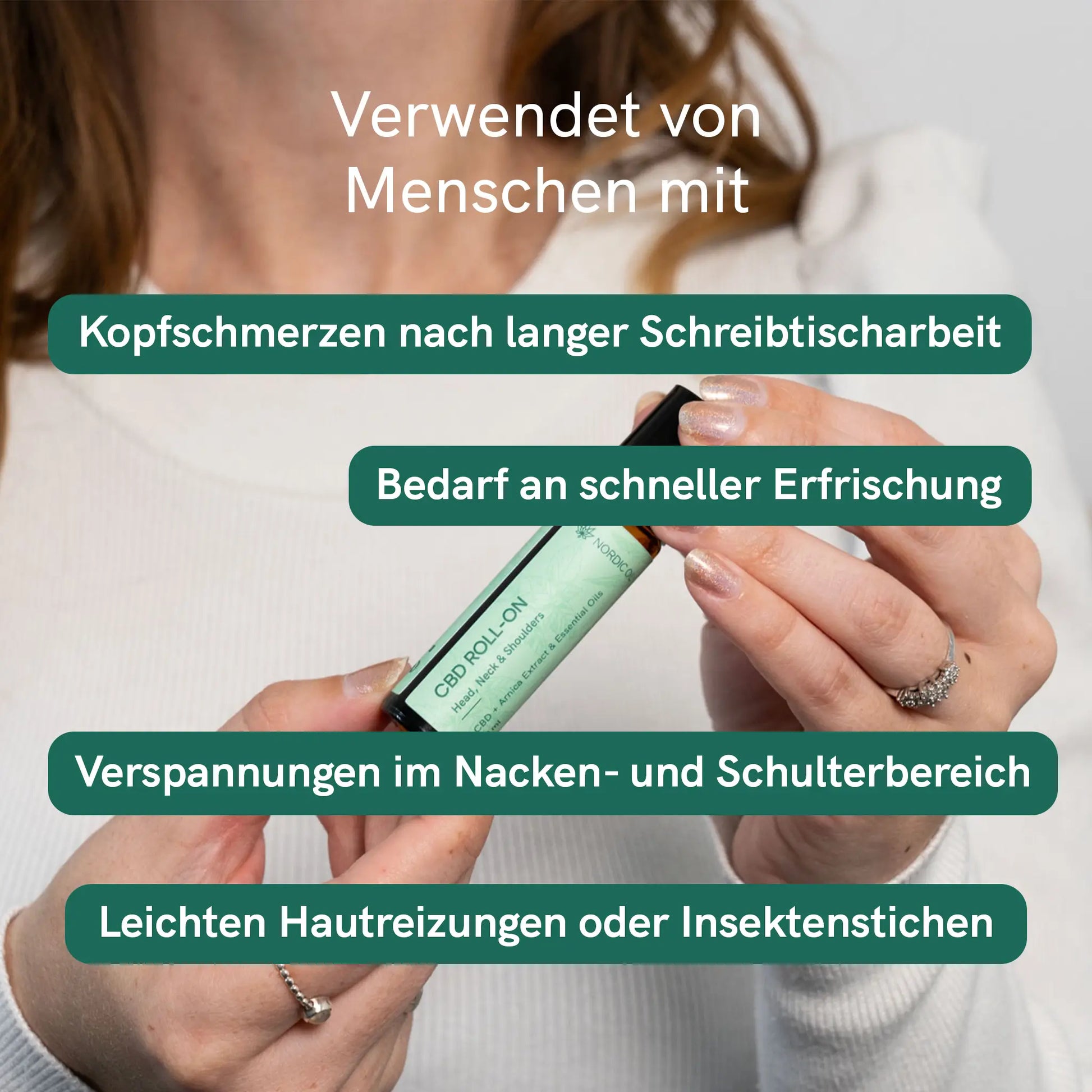 Der CBD Roll-On wurde speziell für Personen entwickelt, die nach einer gezielten Unterstützung bei Muskelverspannungen und Gelenkbeschwerden suchen. Durch seine natürlichen Inhaltsstoffe eignet sich das Produkt auch zur Pflege empfindlicher Haut, etwa nach Insektenstichen. Besonders empfohlen wird der CBD Roll-On für Menschen, die häufig unter Kopfschmerzen leiden, Berufstätige mit überwiegend sitzender Tätigkeit, ältere Menschen sowie alle, die zu Muskelverspannungen neigen. Viele Anwenderinnen und Anwender integrieren den Roll-On in ihre tägliche Routine, um gezielt bestimmte Bereiche zu pflegen und zu entspannen.