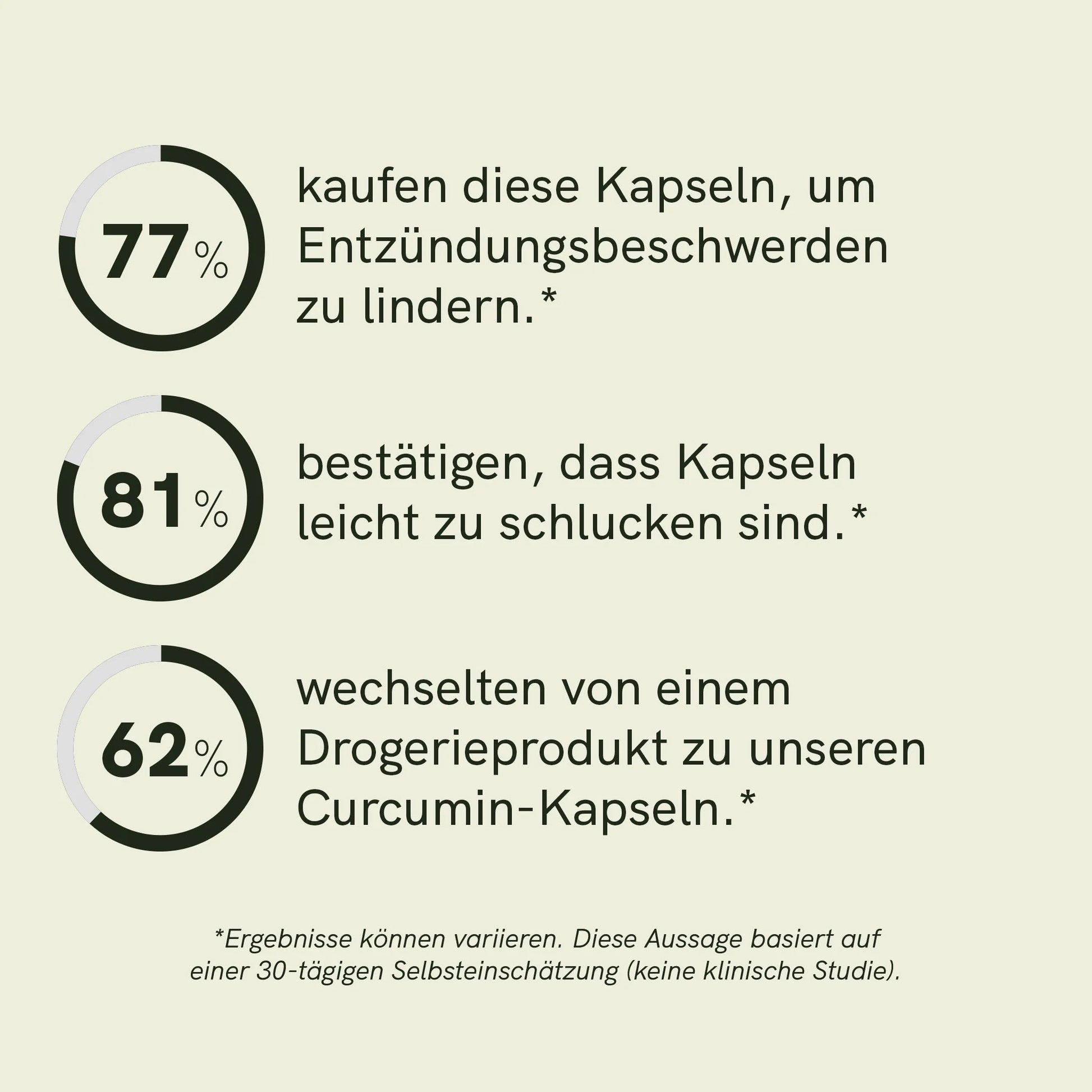 Achtung! Unsere Kapseln enthalten reines Curcumin-Pulver, das bei Berührung eine vorübergehende Verfärbung der Haut verursachen kann. Etwaige Flecken lassen sich durch Händewaschen leicht entfernen. Bitte vermeiden Sie Kontakt mit Kleidung.