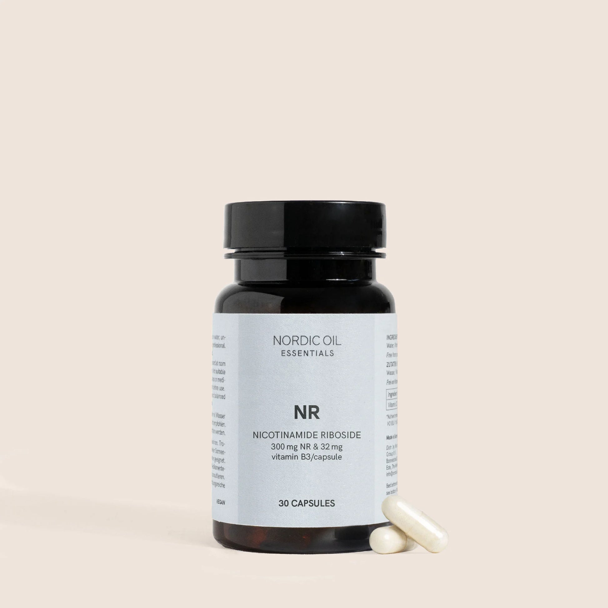 Nicotinamid-Ribosid (NR) Kapseln von Nordic Oil liefern 300 mg NR und 32 mg Vitamin B3 pro Kapsel und bieten einen klaren, forschungsorientierten Ansatz für tägliche Vitalität.
