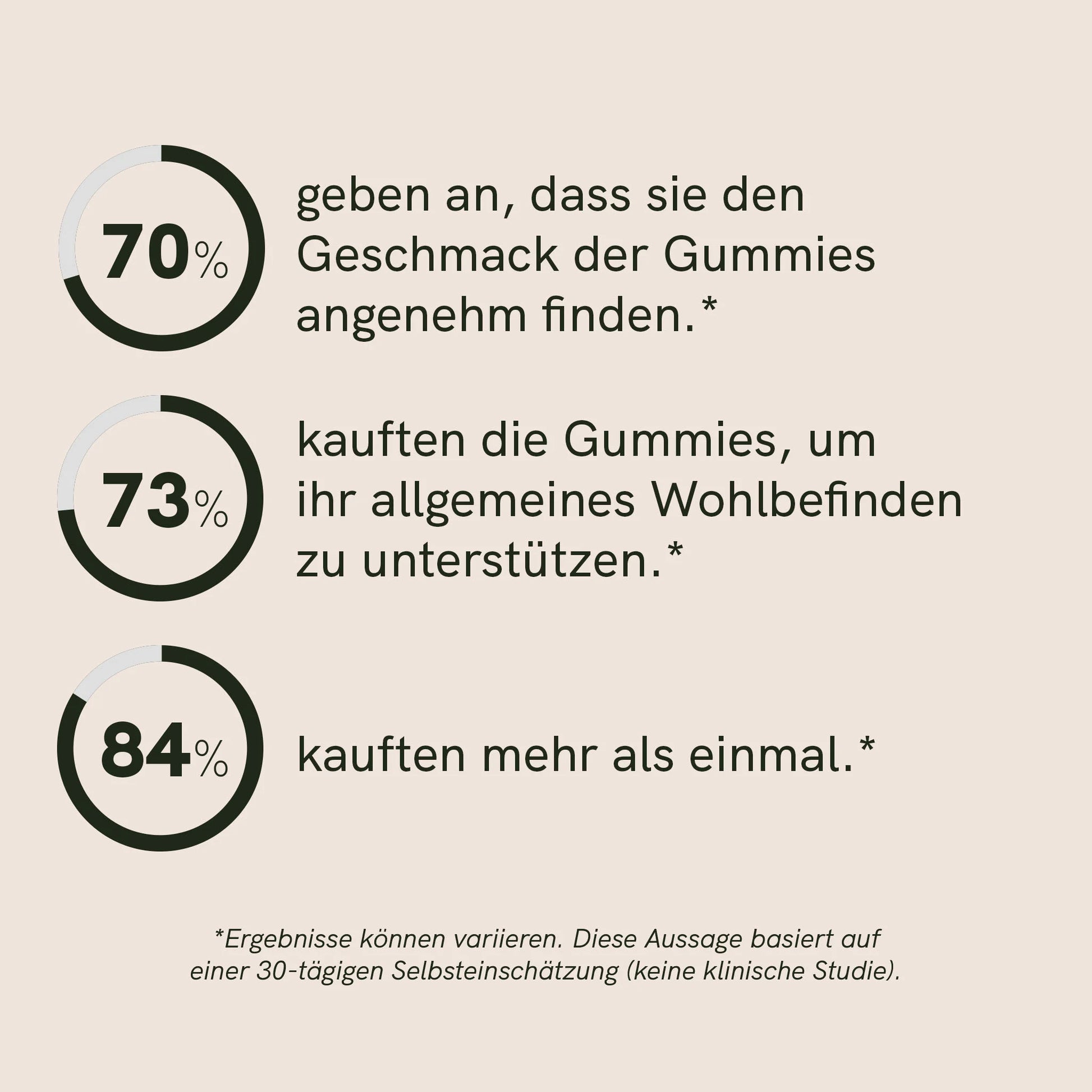 Die Reaktion des Körpers ist individuell, daher können die Ergebnisse der Einnahme unserer Reishi-Gummies von Person zu Person unterschiedlich sein. Manche Menschen bemerken schon nach wenigen Tagen eine Veränderung, während andere erst nach einigen Wochen regelmäßiger Einnahme eine Veränderung bemerken. In der Regel empfehlen wir eine regelmäßige Einnahme über 4 Wochen.